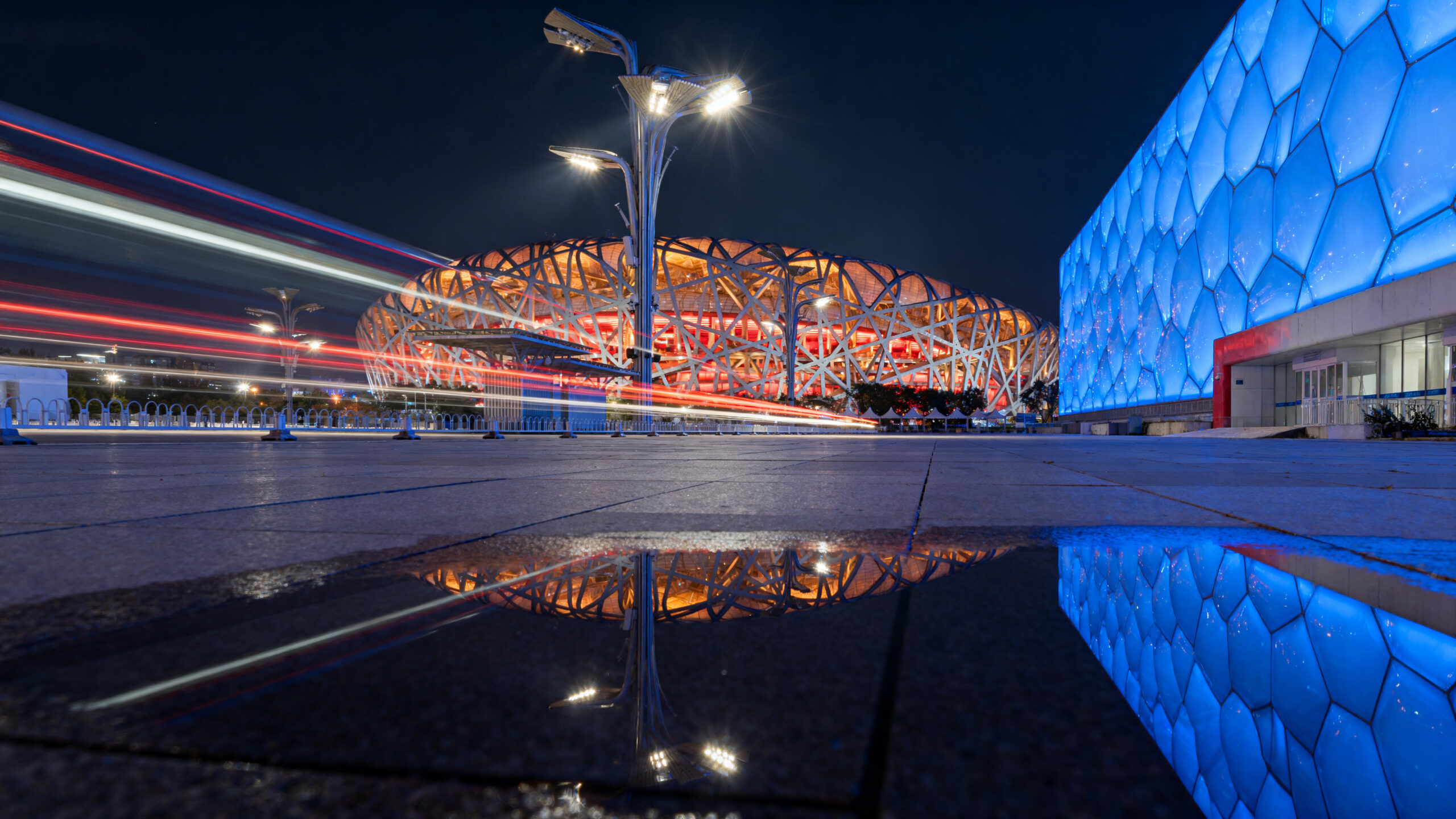 In route back to the city, we pause at the National Stadiumand National Aquatics Center (Bird's Nest and Water Cube)—2008 Olympic venues adorned with intricate Chinese cultural motifs.